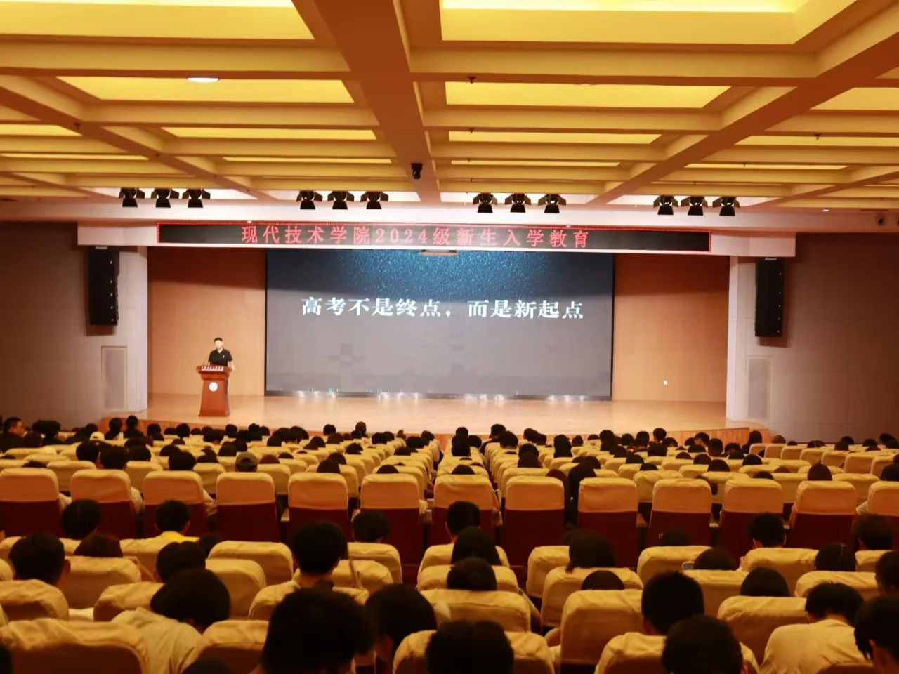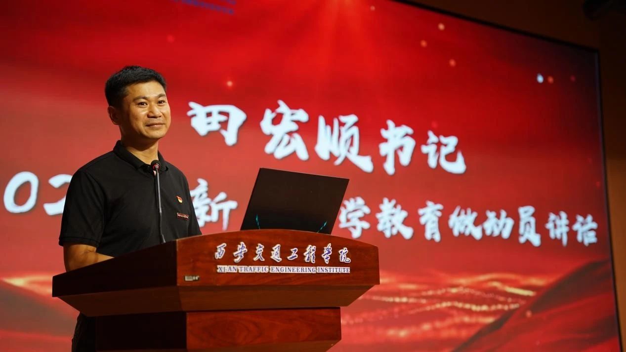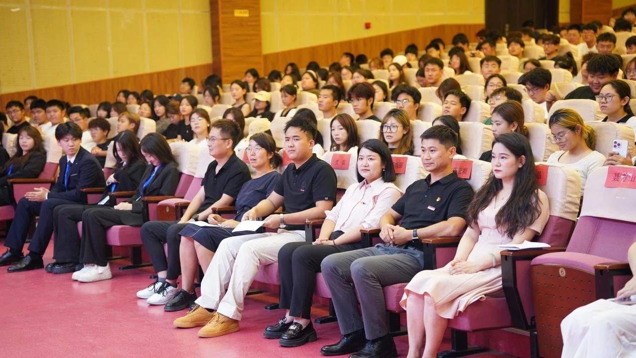 党委书记兼副院长田宏顺从自身经历出发,讲述高考不是终点而是新起点。他强调同学们要调整好自己的心态,积极面对大学生活,早日树立学业规划目标,并指出凡事预则立,不预则废,有了清晰的学业规划目标,才知道自己努力的方向,勉励全体2024级新生:希望同学们做一个自律的人,做一个积极向上充满正能量的人,做一个能够分辨善恶美丑的人,做一个有家国情怀的时代新人。在互动环节中,田宏顺书记通过一个悬念向同学们表示,要想到和得到中间还有做到!机会需要等待,更需要争取!现代新同学,勇敢的迈出你大学的第一步!