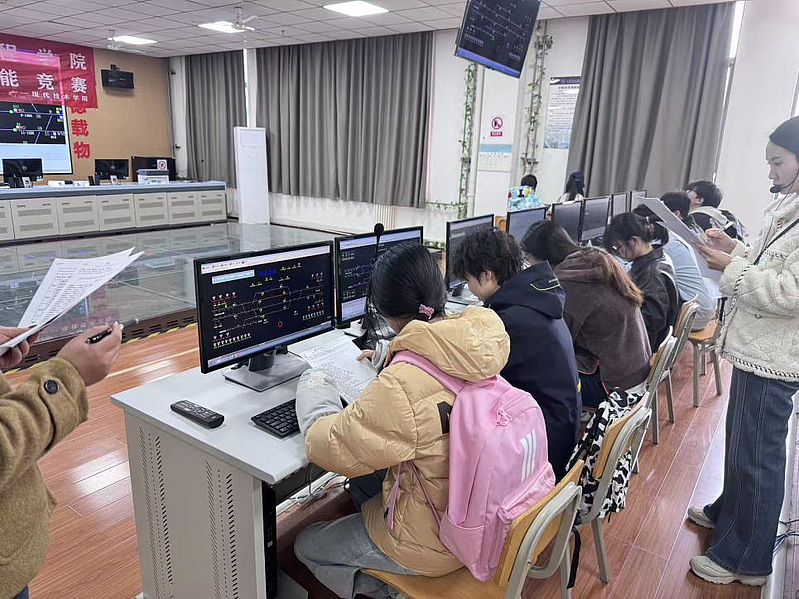 本次竞赛以“以赛促学、以赛促教、以赛促改”为宗旨,紧密对接行业标准与岗位需求,设置了理论知识考核与实际操作技能展示两个环节。理论知识考核涵盖铁路行车组织、信号设备原理、接发列车作业标准等核心内容,重点考察选手对专业知识的掌握程度;实际操作环节则模拟真实铁路行车场景,要求选手在规定时间内完成接发列车的全流程操作,包括信号开放、进路排列、车机联控等关键步骤,全方位检验选手的实操能力与应急处置水平。