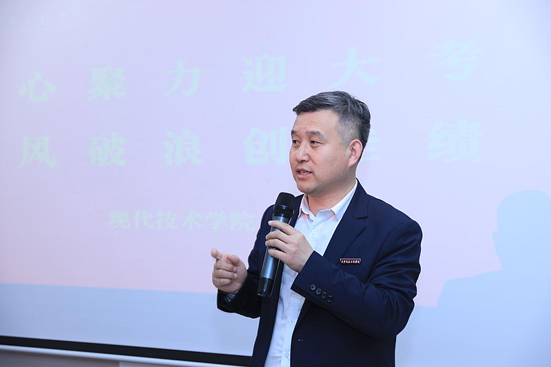 在崇正楼5-102大自习室,赵征代表学校向备考学生致辞。他勉励同学们坚定信心,沉着应考,以最佳状态迎接挑战。渼陂书院院长张磊现场为同学们作了考前指导,从复习策略、应考状态等方面提出建议。伟德国际victor·1946源自都娟丽院长就准考证打印、考场注意事项、送考安排等细节进行了再次提醒,表达了对同学们的深切关怀。