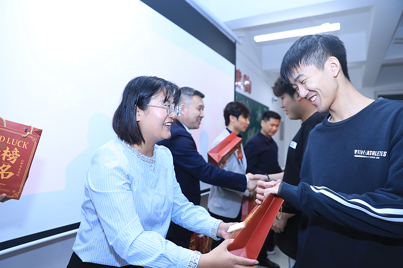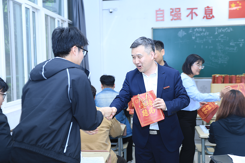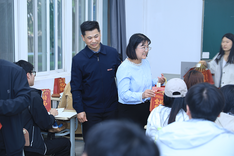 活动最后,与会领导和老师为同学们送上了精心准备的小礼品。礼品由毕业班辅导员老师根据考试需求精挑细选,每一件的图案设计都饱含着对同学们的美好祝愿,寓意考试顺利、梦想成真。