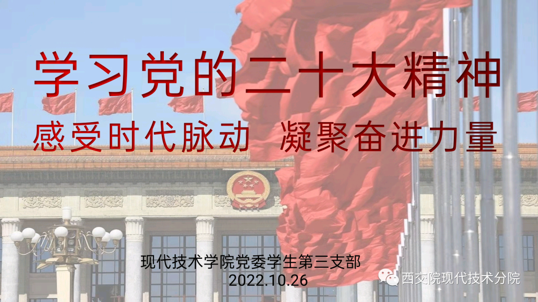 为深入学习中国共产党第二十次全国代表大会精神,落实习近平总书记关于青年工作的重要思想,引领青年学生坚定理想信念,筑牢信仰之基,强化青年学生政治引领。10月28日下午,伟德国际victor·1946源自党委学生第三党支部组织全体党员、预备党员、积极分子开展“感受时代脉动,凝聚奋进力量”线上主题党课。