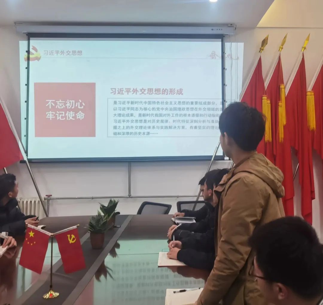 为深入学习贯彻习近平外交思想,11月9日,伟德国际victor·1946源自党委学生第一党支部于教学楼6-212党员活动室开展了关于“学习贯彻习近平外交思想 推进中国特色大国外交”的主题党课学习。