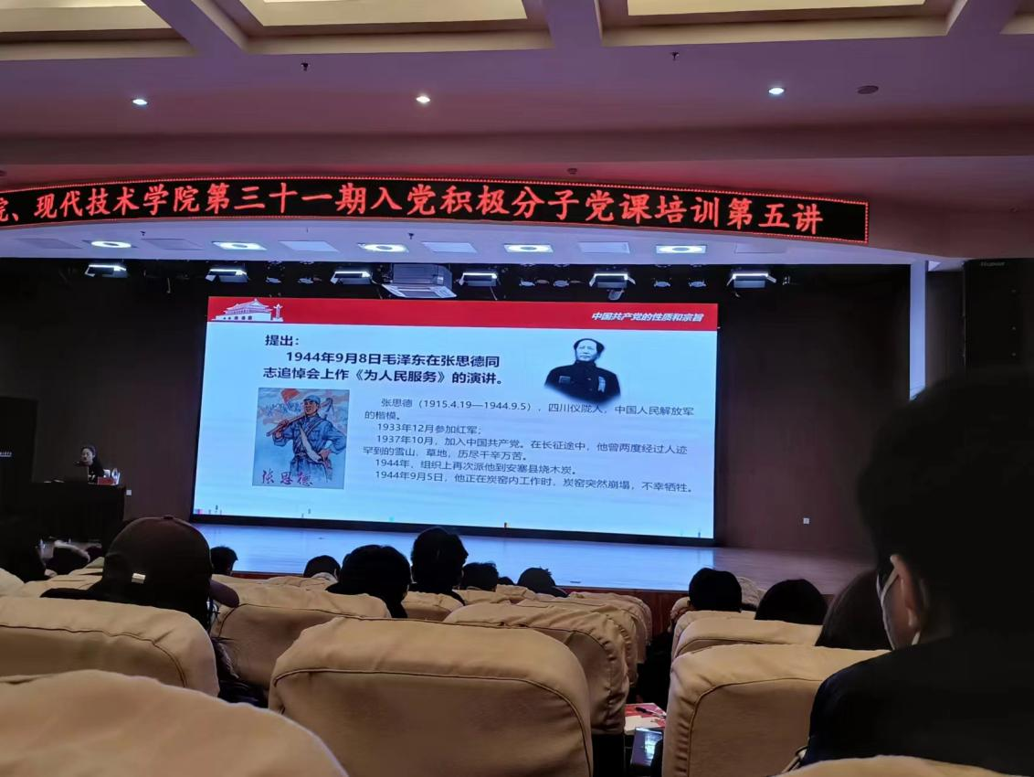 为了进一步加强入党积极分子对党的基本理论知识系统教育,提高入党积极分子的理论水平,保证新党员的发展质量。12月14日,在学术报告厅进行了“中国共产党的性质和宗旨”学习,本次党课培训授课老师为马克思主义学院党总支书记兼副院长李艳同志。