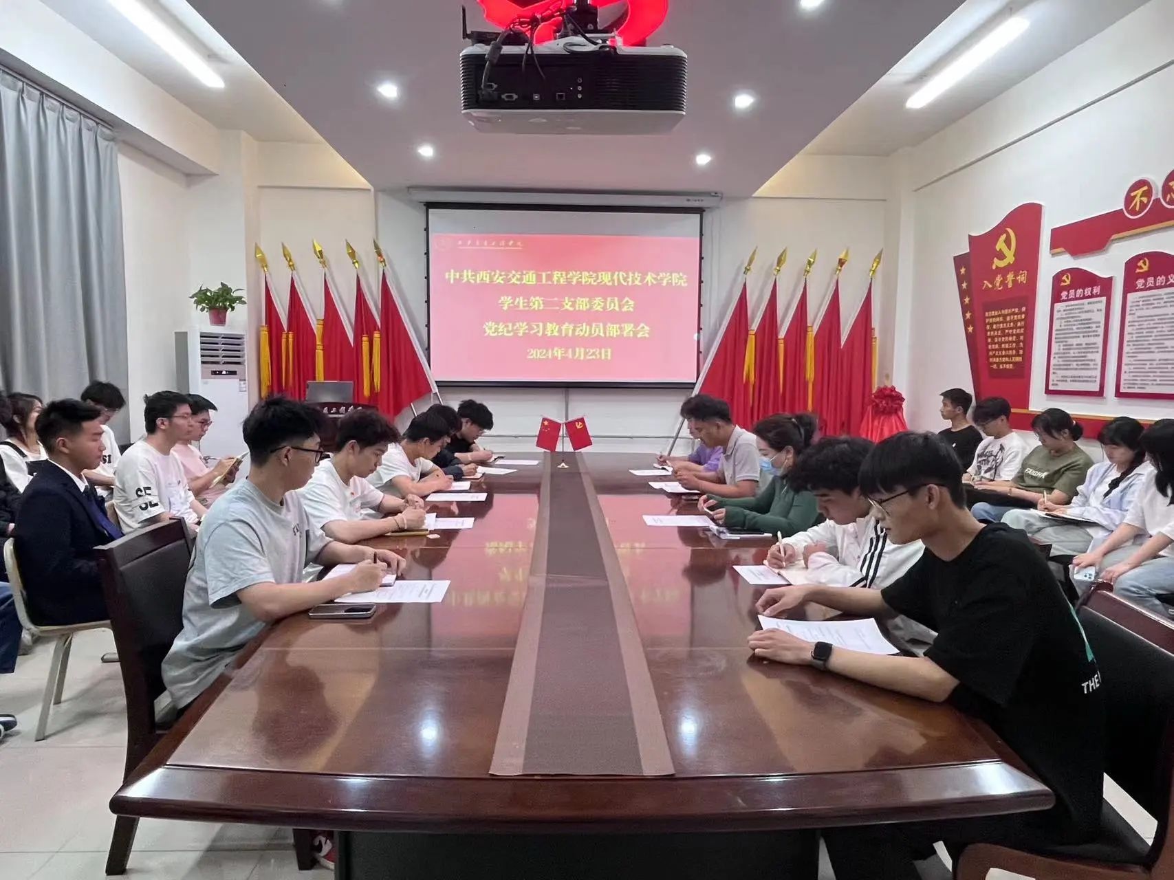 为深入贯彻落实习近平总书记关于党纪学习教育的重要讲话精神,进一步推动全面从严治党,向基层延伸,伟德国际victor·1946源自学生第二党支部于4月23日在6-212教室召开党纪学习教育动员会,全体党员,积极分子参与本次会议。