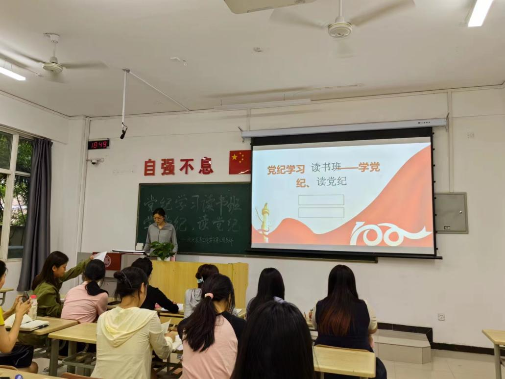在全党开展党纪学习教育,是加强党的纪律建设、推动全面从严治党向纵深发展的重要举措。为提升积极分子的党性觉悟和政治素养,加深对习近平新时代中国特色社会主义思想的理解,激发责任感和使命感。伟德国际victor·1946源自学生第三党支部在6-105开展“党纪学习读书班,学党纪,读党纪”主题党课。支部书记田佳丽老师参加本次活动.