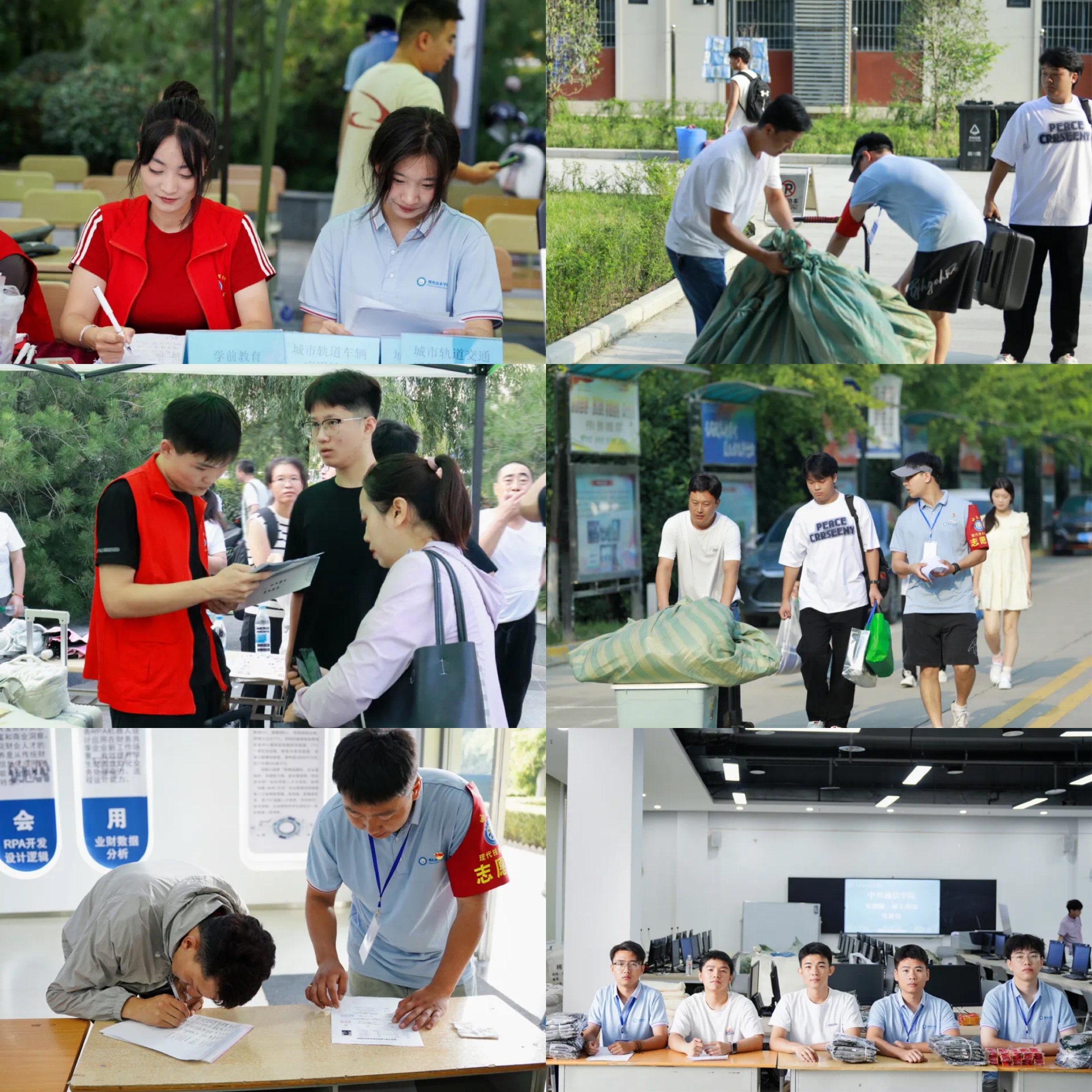 一声声热情洋溢的“欢迎”,一句句“您好,需要帮助吗”的暖心话语,团学干部们早早就位,为新生提供便捷、温馨的“一站式”服务,教学楼前、校门内外、宿舍楼下,学长学姐们热情接待,快速而有序地帮助新生们搬运行李,熟悉宿舍校园环境,每个环节都有条不紊、秩序井然。