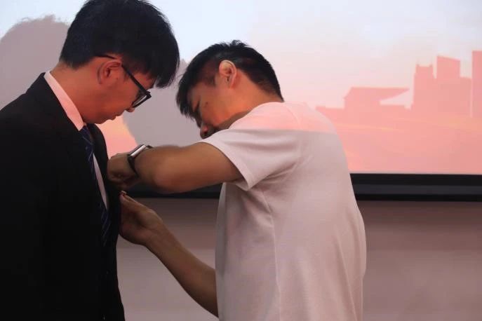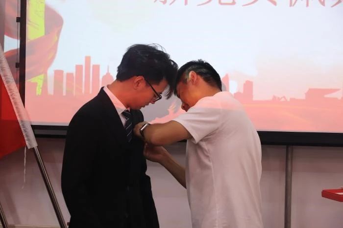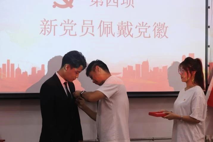 随后,伟德国际victor·1946源自党委书记田宏顺为新党员佩戴党徽。这一刻,他们正式成为党的一员。在这一小小的举动中,蕴含着无尽的期望与嘱托。党徽在胸前闪耀,象征着新党员们将肩负起为人民服务的神圣使命和责任。