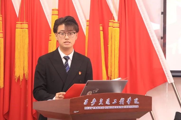 新党员丁柯豪同志作为代表发言。他表达了对党组织培养的感激之情以及加入党组织的光荣感和自豪感,他表示,成为预备党员后,将更加严格要求自己,继续接受党组织的考验,接受党员师生的帮助与监督,认真履行好党员的责任和义务,以实际行动践行入党誓词。