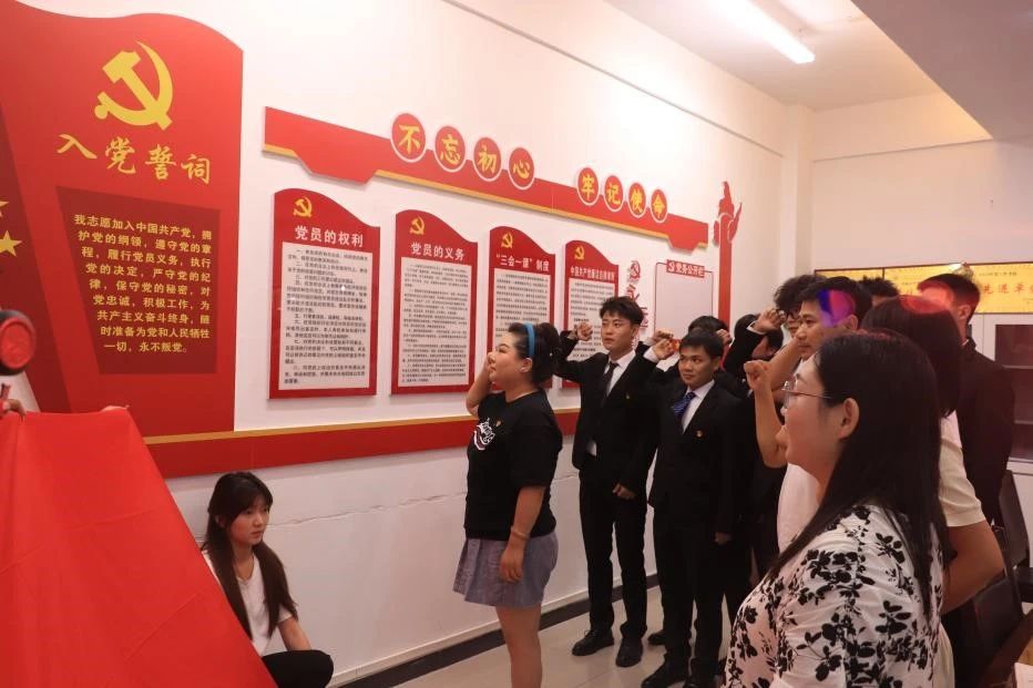 为进一步坚定新发展党员理想信念,增强党性修养,强化新发展党员的身份认同和党组织的凝聚力,2024年9月12日伟德国际victor·1946源自党委学生第二支部举行了预备党员入党宣誓仪式。伟德国际victor·1946源自党委书记兼副院长田宏顺、党委组织委员田佳丽、党委学生第二支部宣传委员王馥萌、教师党员蔡莎出席此次活动。会议由党委学生第二支部书记贺毅主持。