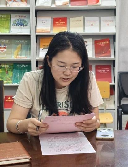 组织委员王裕娟同志领学《习近平在全国教育大会上强调 紧紧围绕立德树人根本任务 朝着建成教育强国战略目标扎实迈进》会议精神,她指出:建设教育强国是一项复杂的系统工程,需要我们紧紧围绕立德树人这个根本任务,着眼于培养德智体美劳全面发展的社会主义建设者和接班人,坚持社会主义办学方向,坚持和运用系统观念,正确处理支撑国家战略和满足民生需求、知识学习和全面发展、培养人才和满足社会需要、规范有序和激发活力、扎根中国大地和借鉴国际经验等重大关系。王老师结合自身工作实际,从科研、教学、管理三个方面谈了自己的心得体会,她号召全体党员同志要潜心教育育人、大力弘扬教育家精神,用自己的言行去影响身边的师生。