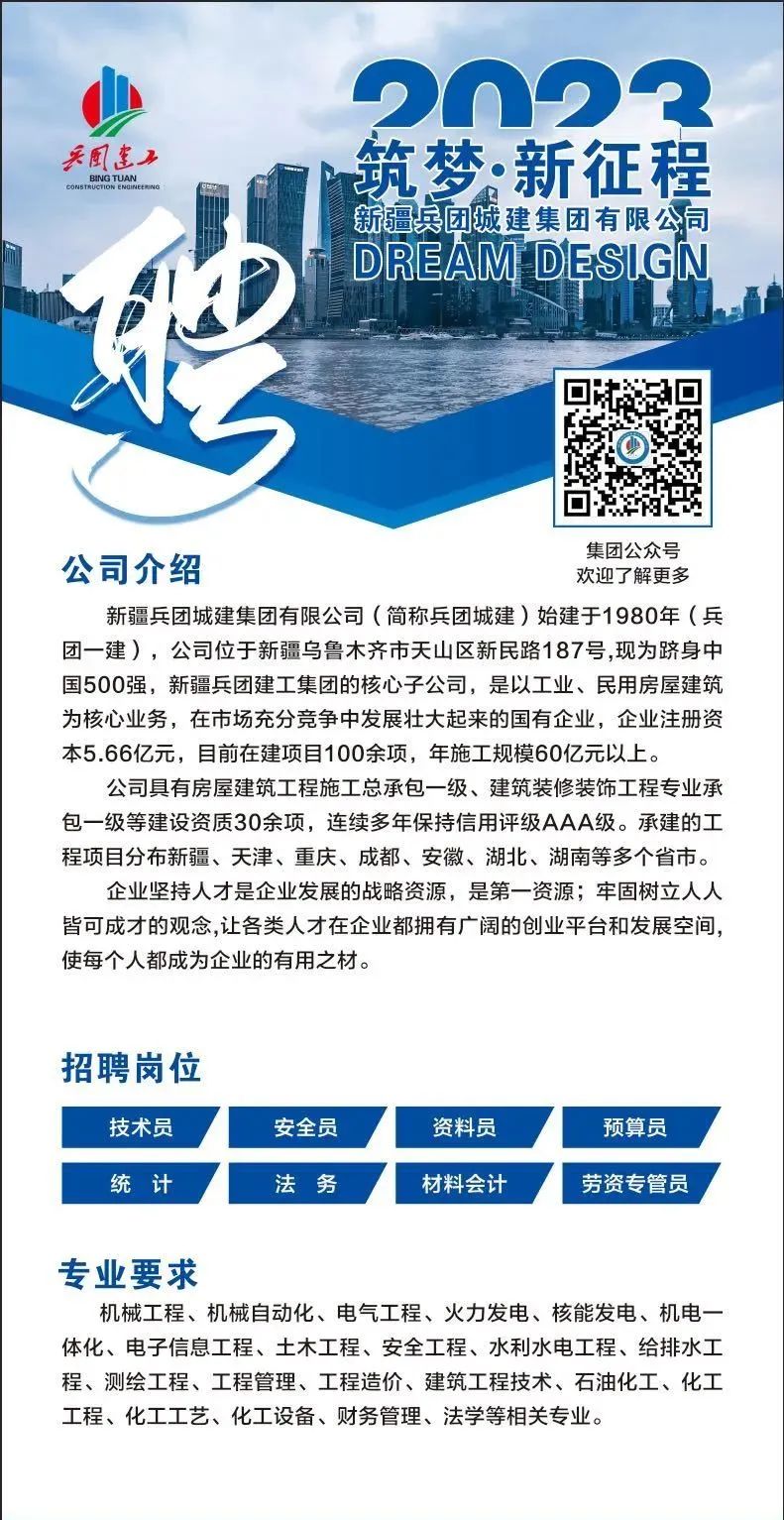 【就业专栏】新疆兵团城建集团有限公司2024年校园招聘