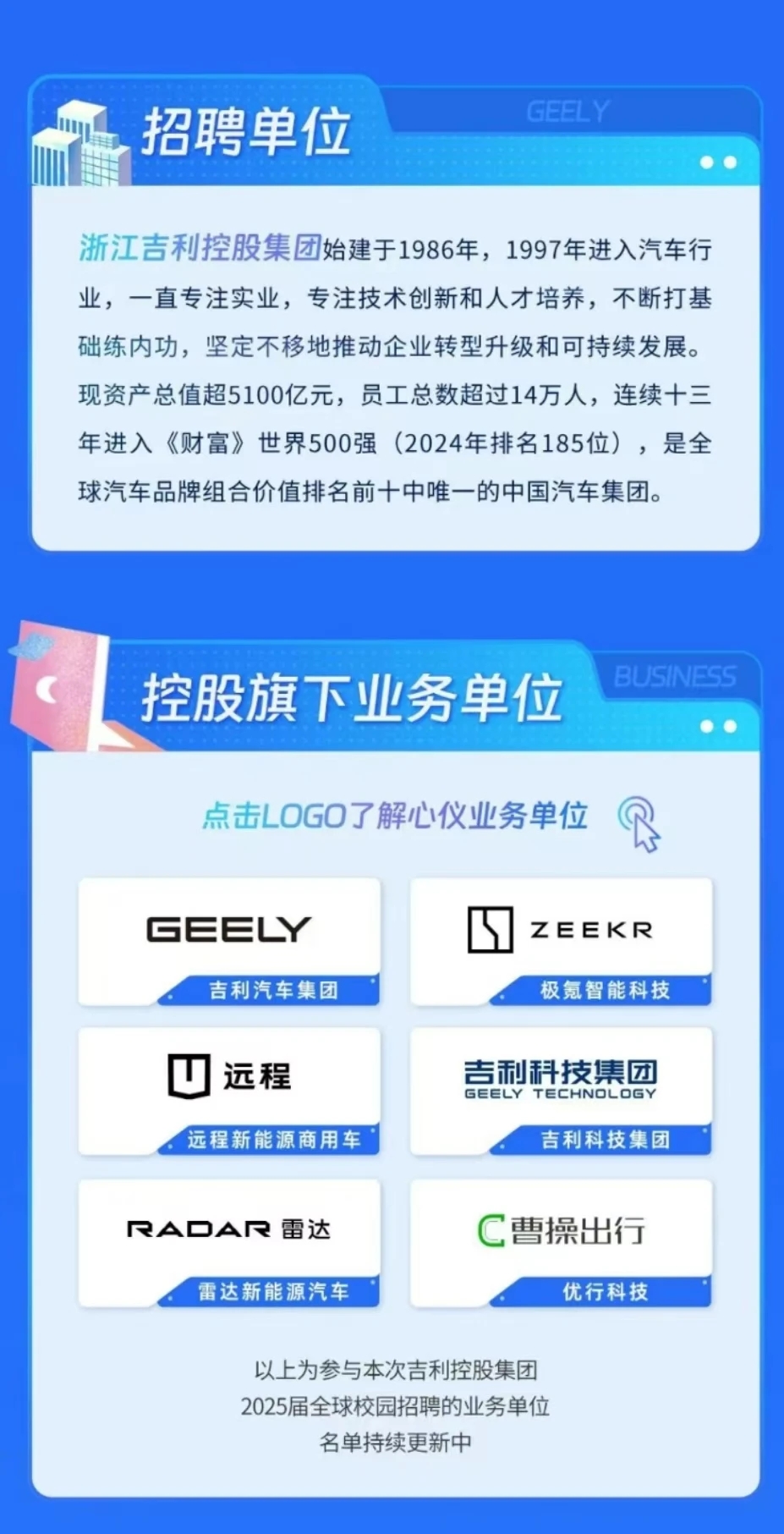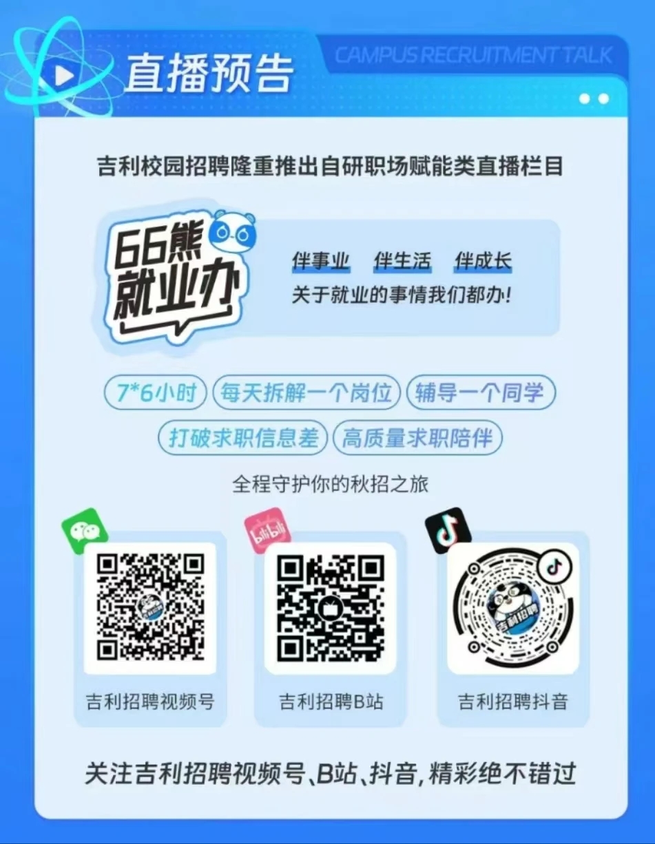 吉利控股集团2025届全球校园招聘启动!