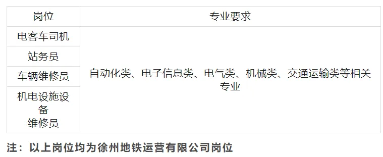 徐州地铁运营有限公司成立于2016年3月,主要承担徐州地铁1、2、3号线的运营管理、乘客服务等相关工作。现根据公司发展需要,公开招聘高校毕业生,具体招聘事宜如下: