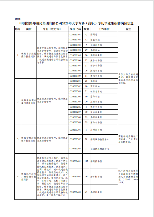 5.中国铁路郑州局集团有限公司人事部保留对招聘公告及附件中各项要求的最终解释权。