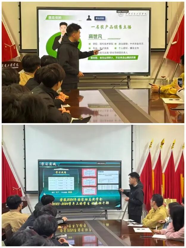 活动中,经学院精心遴选的学长导师团队,以 “过来人” 的身份与学弟学妹面对面交流。他们手持精心制作的 PPT,围绕大赛“筑梦青春志在四方,规划启航职引未来” 的主题,系统解读大赛目标、赛制安排、赛道设置及参赛要求—从面向非毕业年级的 “成长赛道”,到聚焦高年级求职实战的 “就业赛道”,学长导师结合自身参赛经验与职业规划心得,用通俗化的语言拆解专业赛事内容,用可视化的图表呈现报名流程与材料规范,让抽象的 “职业规划” 变得具体可感,让复杂的赛事规则变得清晰易懂。
