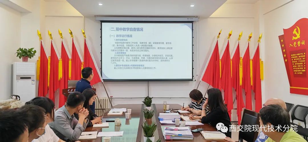 我院副院长党亮亮从学院的基本情况、期中教学自查情况、存在问题及改进措施等三个方面作了详细的汇报,重点介绍了学院在课堂教学进度安排、期初补考课堂进度安排、毕业生信息核查、学业预警、实验教学实验报告进行情况、教研活动安排情况“以学生为中心”的教学范式改革、教学成果培育,并指出目前学院针对“以学生为中心的教学范式改革”机制与路径问题积极转变思路,提出解决措施,检查组就学院的特色工作提出持续发展指导,就存在的问题提出改进建议。院长都娟丽表示学院会把握好期中检查的机会,查摆问题,明确方向,持续改进,继续坚持培养产教融合的人才培养定位,坚持围绕产业建专业、坚持以学科竞赛为牵引、持续提升学生创新创业能力,提升“产教融合”人才培养模式的高质量发展。最后徐炜副校长在听完工作汇报后提出了工作要求。一是学院要充分发挥主体责任,自查发现的问题和检查组反馈的问题都要整改到位;二是要强化服务,要不断反思,改进工作;他强调,学院找准定位紧跟学校发展的大方向,要坚持“以教学为中心”地位不动摇,全院各部门增强质量意识、服务意识;要强化人才培养方案和教学计划的审定和质量标准的执行,积极推进制度建设,强化教学过程管理;要继续优化教学检查的方式、方法,坚持目标导向和问题导向相结合,常规检查和专项检查相结合,自查自纠和互查互帮相结合,落实问题反馈,确保整改见效。