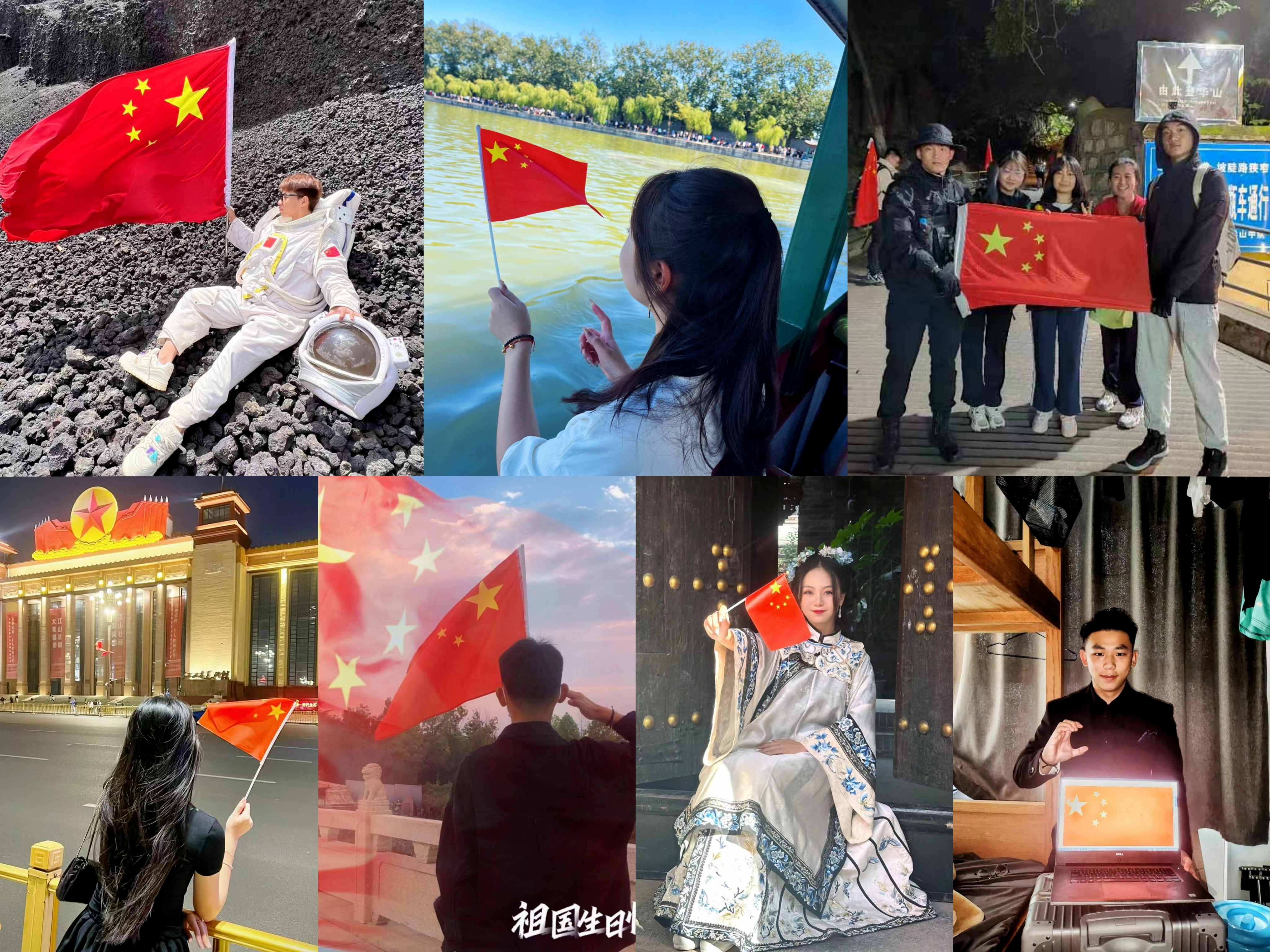 在照片征集期间,同学们以多种方式与国旗合影、为祖国喝彩。怀着对祖国母亲的敬意,簇拥在一面面鲜红的五星红旗旁,为祖国献上最真挚的祝福。一幅幅照片是我们幸福生活的见证,传递着青年大学生们“我爱你,中国”的心声,也是祖国蒸蒸日上的缩影,更是全院师生对祖国爱得深沉的表达、对红色信仰坚定不移的信任、对新时代建功立业的礼赞和对实现伟大复兴中国梦的憧憬。