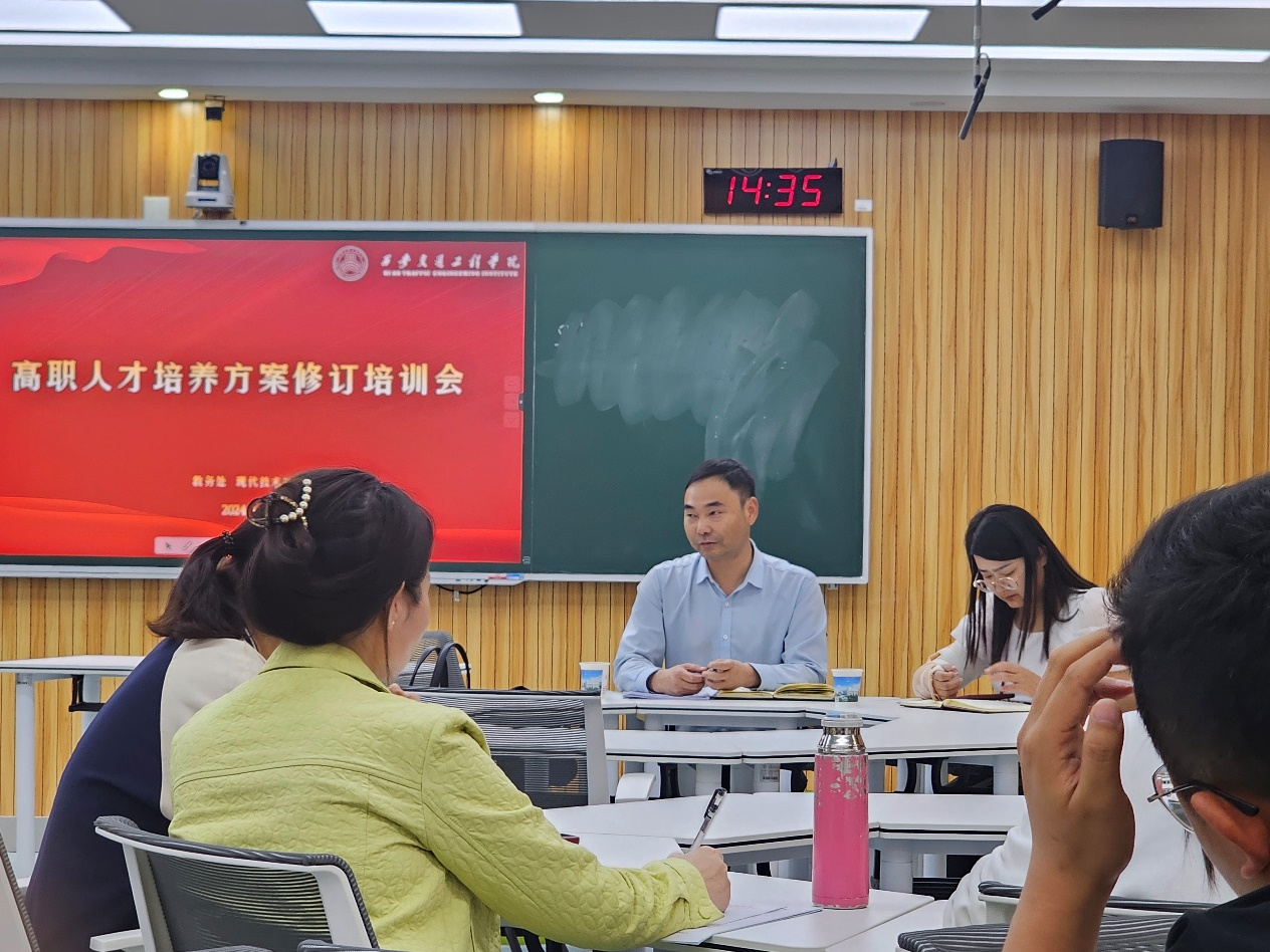 4月24日下午,伟德国际victor·1946源自在智慧教室开展了高职人才培养方案修订培训会。特别邀请了西安铁路职业技术学院交通运输学院的副院长刘新强,陕西铁路工程职业技术学院教务处副处长杨勃与我院各个专业带头人进行培训与交流,伟德国际victor·1946源自都院长主持了这次的培训会。
