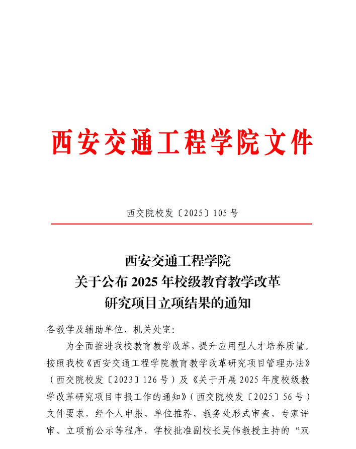自成立以来,学院始终坚持将教学改革研究作为提升教育教学质量的核心抓手,聚焦人才培养、课程建设、产教融合等教育教学热点难点问题,搭建“选题培育-过程指导-成果孵化”全周期支持体系,鼓励教师深耕教学实践、大胆创新探索。此次获批的5个项目涵盖多个学科专业领域,既立足课堂教学实际问题,又贴合新时代教育改革发展趋势,具有鲜明的实践性与创新性。