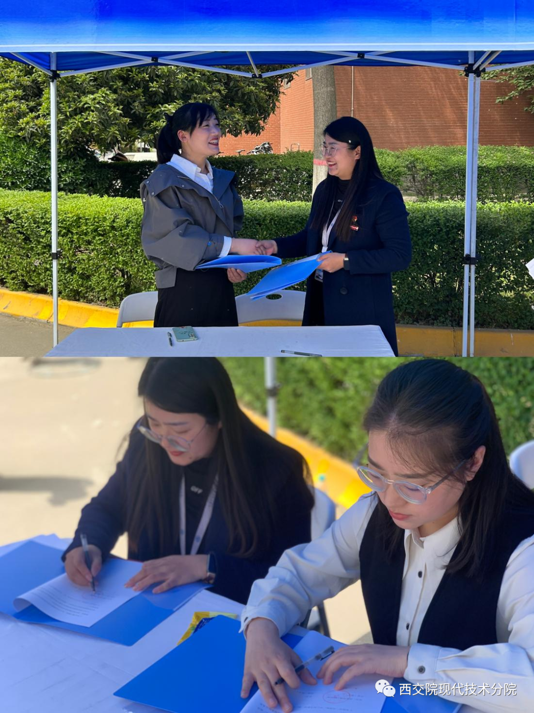 伟德国际victor·1946源自都娟丽院长、田宏顺书记、党亮亮副院长及全体辅导员深入招聘会现场,积极与参会企业沟通交流,先后与陕汽集团陕西汉德车桥有限公司、陕西西建路桥工程有限公司、陕西彩泓教育科技有限公司、长安花粮油股份有限公司、西安市鄠邑区余下金星幼儿园深入了解招聘岗位、专业要求、用人条件、薪资待遇等情况,并向用人单位介绍学校办学特色及我院毕业生情况,并以此活动为契机,加强与用人单位的合作,不断探索校企协同育人、共促就业的新路径。