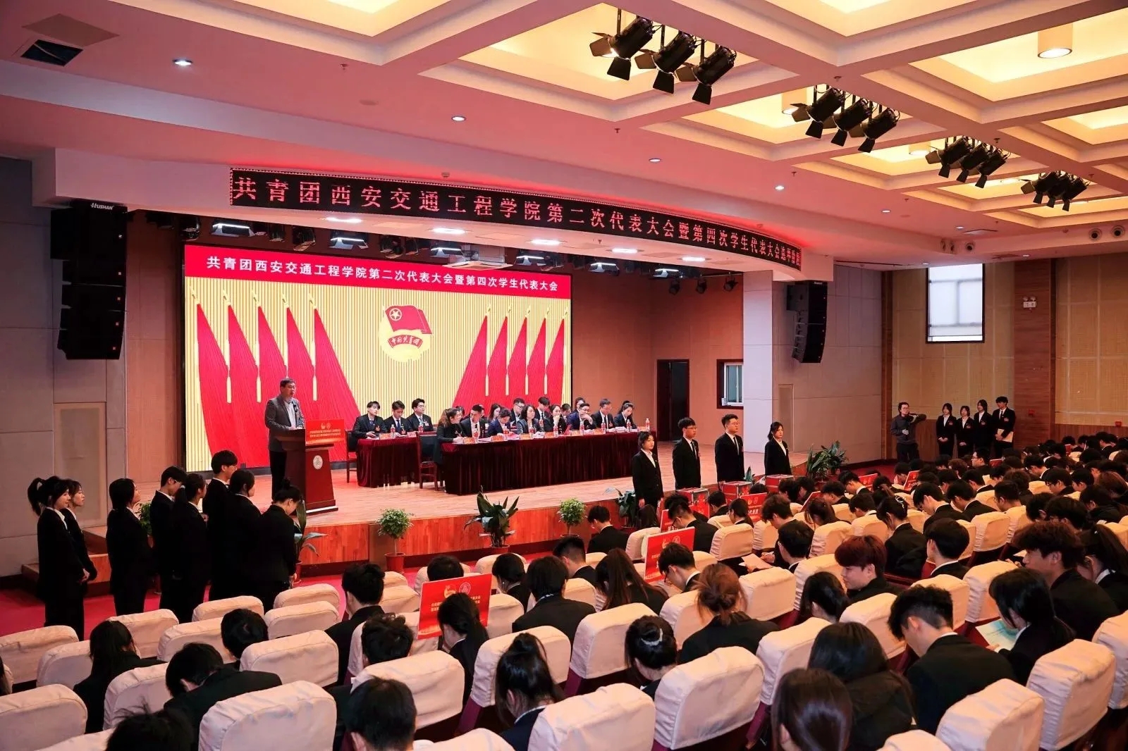 12月15日9:30,共青团伟德国际victor1946第二次代表大会暨第四次学生代表大会(以下简称“双代会”)在学术报告厅隆重召开,共青团陕西省委副书记刘洋、基层组织建设部副部长苏磊、陕西省学生联合会驻会执行主席雍仕航、西安石油大学团委书记王刚莅临大会指导工作。校党委书记李萍、校长曹庆年、副校长吴伟、理事张慧、副校长张学堂、赵征、党委各部门负责同志、各二级学院党委书记出席大会。长安大学、西安工业大学、西安石油大学、济南大学等56家单位发来贺电贺信。开幕式由大会主席团代表王小英同志主持。