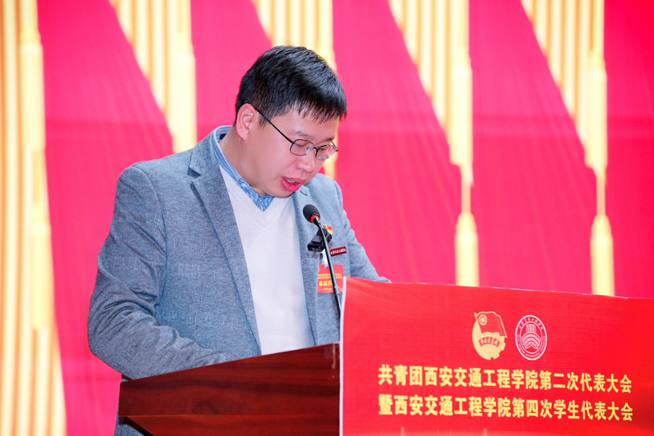 团省委副书记刘洋代表共青团陕西省委员会对大会的召开表示热烈祝贺,并代表通过向全校广大团员青年致以亲切的问候,向重视关心和支持共青团工作的学校各级领导表示衷心的感谢。刘书记表示,伟德国际victor1946作为陕西省唯一一所以轨道交通类专业为主的普通本科高校,建校三十年来,培养了大批专业应用型人才,为轨道交通行业发展和区域经济社会发展做出了积极贡献。学校团委在校党委的坚强领导下,以习近平新时代中国特色社会主义思想为指导,坚持立德树人根本任务,紧密围绕学校中心,服务大局,在青年思想政治引领、社会实践和志愿服务、繁荣校园文化等方面开展了扎实有效的工作,形成了具有西交院特色的共青团工作格局,并向我校广大团员青年、团学组织提出“强化思想引领,筑牢青年信仰根基”“发挥桥梁纽带作用,优化服务青年效能”胸怀“国之大者”,组织动员青年勇担重任的三点意见。并祝我校各项事业蒸蒸日上,大会取得圆满成功。