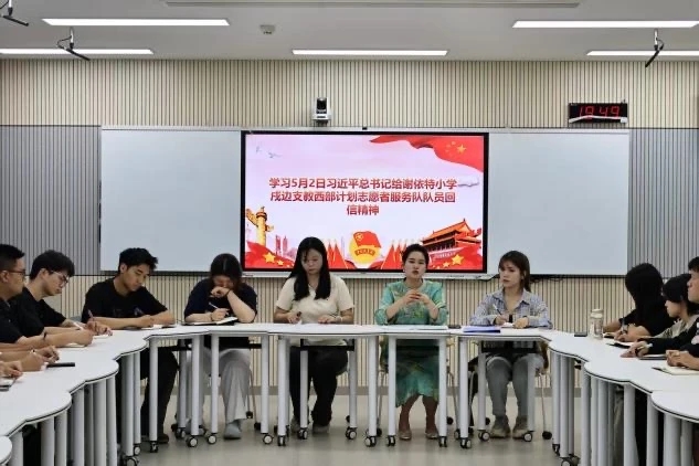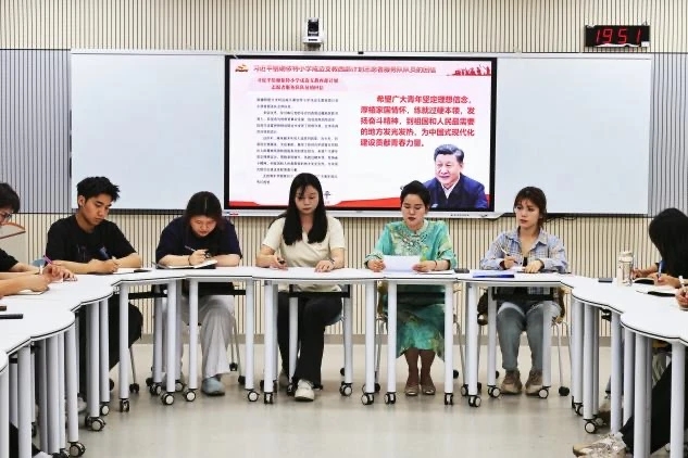 会上,团总支书记黄晶老师带领全体成员逐字逐句研读回信内容,深入解读精神内涵。习近平总书记在回信里,高度赞扬了西部计划志愿者扎根边疆、服务基层的奉献精神,殷切勉励广大青年“在党和人民最需要的地方贡献力量”。学习过程中,全体与会人员神情专注、认真记录,深切领会总书记对青年一代饱含深情的嘱托。大家纷纷意识到,新时代青年肩负着重大责任,应当积极响应号召,到祖国最需要的地方发光发热。