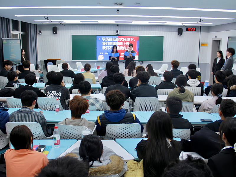 比赛一开场,双方辩手就火力全开,开篇立论直击核心不含糊!正方会计2502班强势输出“学历贬值≠能力缩水”,喊出“向上卷才是破局关键”的主张——在竞争白热化的当下,深耕专业、解锁技能点的“向上卷”,能帮我们跳出同质化内卷怪圈,牢牢攥住成长主动权;反方电气2501班也不甘示弱,主打“拒绝无效内耗”,认为“不盲目向上卷才是理性成长”,与其跟着焦虑节奏瞎忙活,不如找准自身优势精准发力,走出一条差异化的高效成长路。