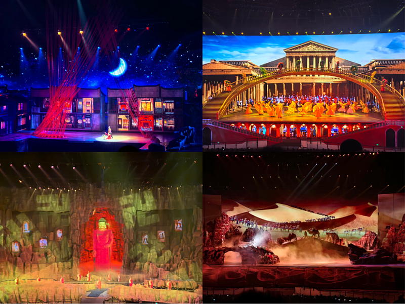 活动在大型特技秀《驼铃传奇》的震撼演出中拉开帷幕。剧目以丝路驼队一路西行的历程为主线,生动再现了盛唐时期长安城商贾云集的繁华气象、驼队穿越沙漠戈壁的艰险历程,以及西域市集多元文化交融的生动场景。剧中驼工们不畏艰险、守望相助的“骆驼精神”,以及不同民族间互通有无、共生共荣的感人情节,深刻诠释了丝路“同心共济、互利共赢”的核心价值,使在场师生深受触动。大家凝神观看,不时低声交流,在跨越千年的时空对话中,深切感受古代先辈的开拓意志与开放胸襟。