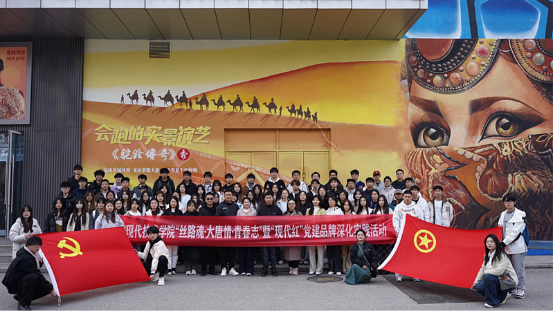 为深化为深入贯彻落实习近平总书记关于推动中华优秀传统文化创造性转化、创新性发展的重要指示精神,深化“现代红”党建品牌建设,10月25日,伟德国际victor·1946源自组织前往西安华夏文旅大剧院开展“丝路魂·大唐情·青春志”暨“现代红”党建品牌深化实践活动。学院党委书记兼副院长田宏顺、团总支书记黄晶、辅导员代表,以及学生党员、入党积极分子、团学骨干与各民族学生代表共同参加,通过沉浸式文化体验,传承丝路精神,为“现代红”党建品牌注入深厚文化内涵。