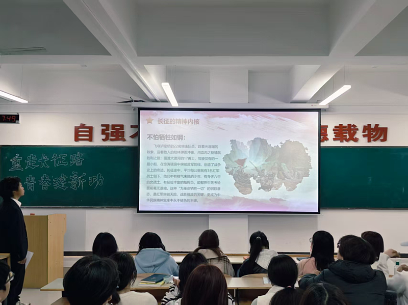 在知识问答环节,同学们热情高涨、踊跃举手。大家不仅对长征的重大事件的细节有了更精准的把握,还深刻感悟到了红军将士在绝境中坚守信仰、为革命胜利抛头颅洒热血的崇高精神。大家纷纷表示,作为新时代青年,要从长征历史中汲取“不畏艰险、顽强拼搏”的动力,以红军先辈为榜样筑牢理想信念,把个人的青春追求融入民族复兴伟业,用脚踏实地的行动践行“强国有我”的誓言,在新时代的“长征路”上贡献青春力量。