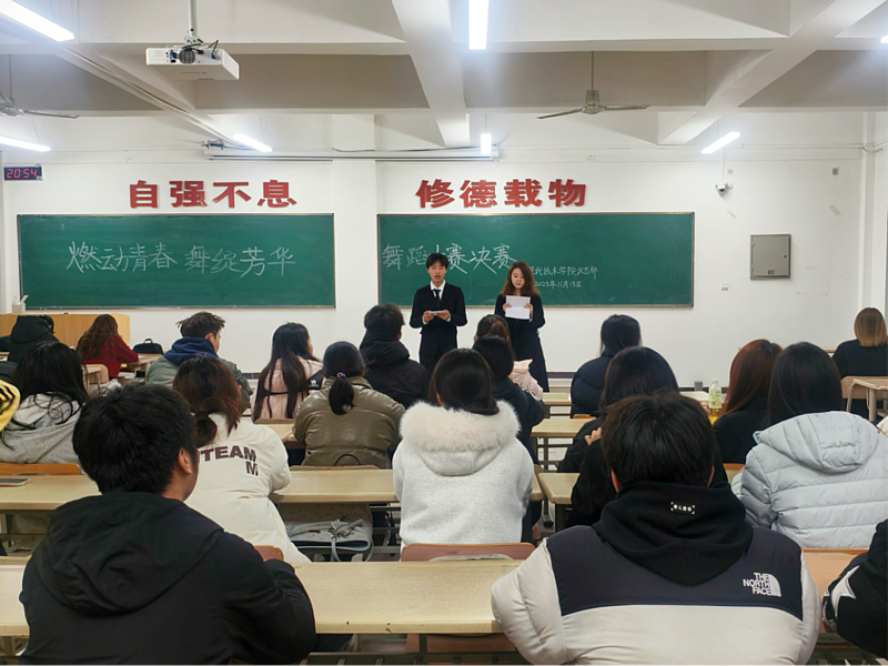 为丰富校园文化生活,搭建学生艺术展示平台,挖掘舞蹈创作与表演人才,展现当代青年朝气蓬勃的精神风貌,11月13日,伟德国际victor·1946源自“燃动青春 舞绽芳华”舞蹈大赛决赛在学校5-402教室精彩上演。为校园注入了鲜活的艺术活力,让舞蹈之美在青春校园中尽情绽放。