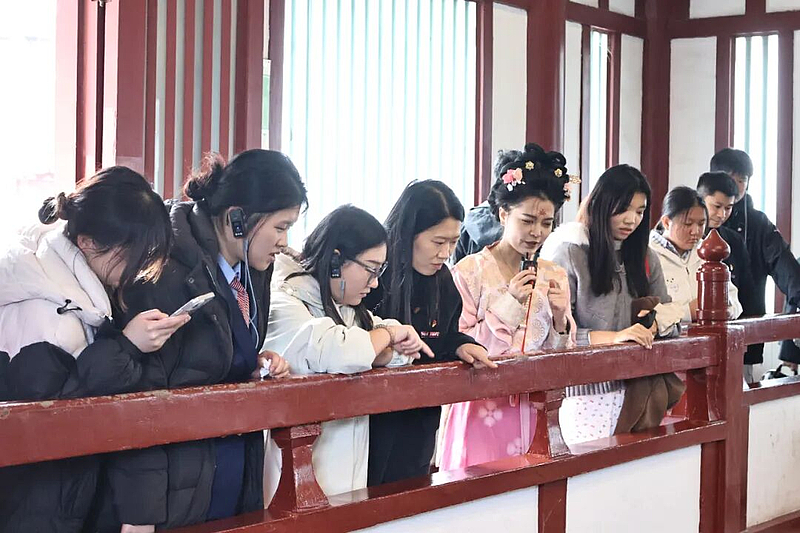 在华清宫历史文化景区,师生开展了一场深度的文化浸润学习。通过参观汤院遗址群,同学们领略了唐代皇家园林的建筑智慧与艺术成就,从古代御道、驿站等交通遗迹中探寻交通在国家治理与文化交融中的历史作用。在五间厅,通过珍贵的历史实物与图文资料,大家深入了解了西安事变的历史背景与重要意义,接受了一次深刻的爱国主义教育。登临瑶光阁,俯瞰山河壮丽,师生共同感受大唐盛世的开放气度与恢弘格局,从历史长河中汲取深厚的文化自信,更加坚定了服务国家发展的选择。
