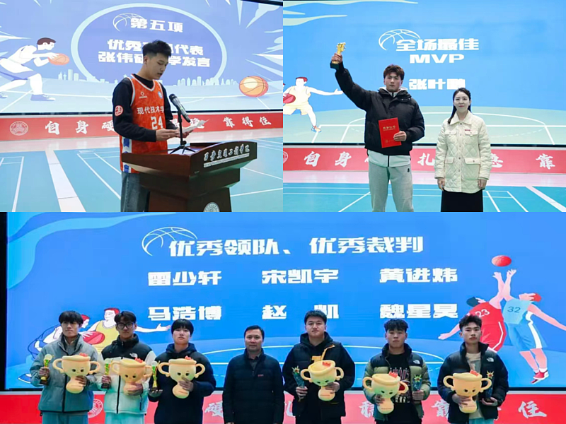 我院队员张叶鹏在赛场上表现尤为亮眼,凭借出色的组织能力与得分效率,不仅带领团队稳步追分,更荣获本次赛事“MVP”称号;赛后,张伟研作为运动员代表发言,坦言“团队协作是我们最大的底气,亚军是荣誉更是动力”。尽管最终以一分之差惜败,但队员们全程咬紧比分、永不言弃的拼搏姿态,赢得了现场师生的一致喝彩。