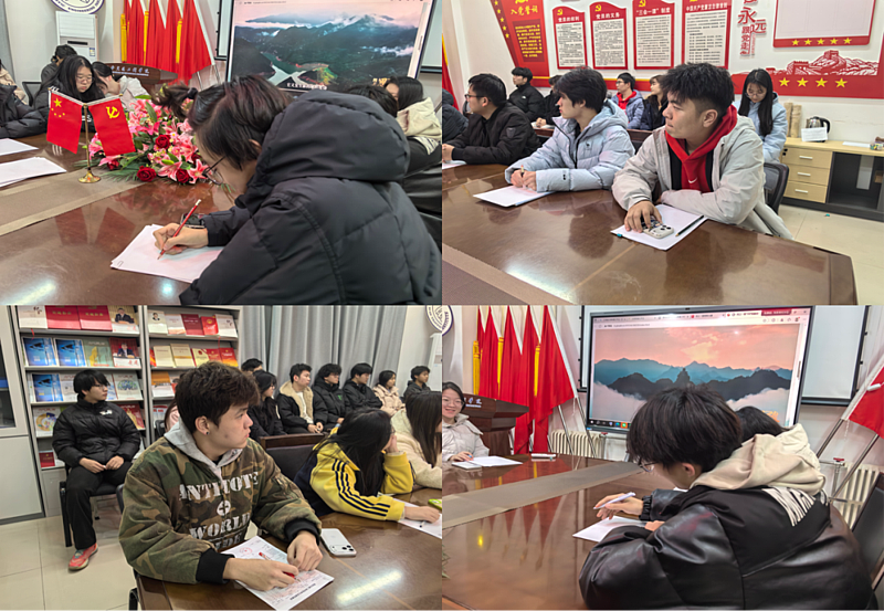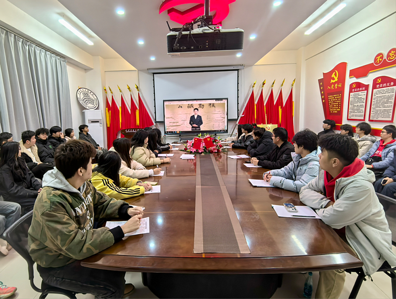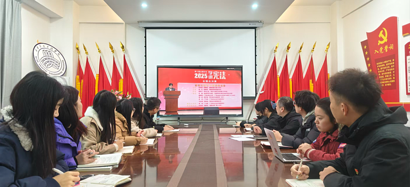 专职组织员聂磊老师在6-212以“宪法与青年责任”为主题主持集中研学活动,学院党委书记兼副院长田宏顺、各支部书记、全体辅导员及各年级学生代表共同参与。活动伊始,师生共同观看教育部全国青少年普法网宪法主题直播,在跟随权威解读深入学习宪法核心要义、精神实质与制度内涵的同时,还在直播中欣赏了一系列宪法主题优秀作品展演。其中,《你好,朋友!》用通俗案例讲解宪法与公民日常生活的紧密联系;《宪法:点亮特别的生命之光》聚焦宪法中对残疾人等特殊群体的权益保障条款,传递平等法治理念;《万物共生,“宪”在守护》阐释宪法对生态文明建设的顶层设计,呼应学院绿色校园建设理念;《备案审查,守护你我》解读备案审查制度在维护宪法权威、保障群众利益中的重要作用;《永远与宪法同行,保障与强国共筑》结合PPT演讲解读“一国两制”、民族区域自治等重要制度的宪法依据与实践价值。直播学习与作品展演结束后,全体成员起立共同领唱《宪法伴我们成长》,熟悉的旋律、昂扬的歌词,让法治精神随音符流淌,在每个人心中留下深刻印记。