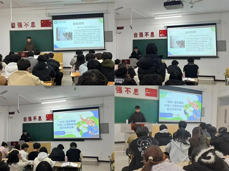 “这场比赛能切实提升办公自动化核心技能,为未来职场加分!”“从 Word 长文档排版到 Excel 数据建模,从 PPT 可视化设计到技能实战应用,全流程培训助力能力跃升!” 在各班级宣传现场,学院学长导师团队通过主题宣讲、案例分享、疑问解答等形式,向同学们全面解读赛事价值、培养模式与激励机制。从赛事聚焦的 Word、Excel、PPT 三大核心模块,到 “线上培训 + 自主练习 + 经验分享” 的闭环培养体系,从个人奖项、纪念奖励到优秀班集体、优秀指导教师的多元激励设置,详实的介绍与清晰的成长路径,让同学们深刻认识到计算机应用能力在职业发展中的核心竞争力。宣传过程中,学院更注重价值引领,强调 “技能成才、技能报国” 的时代内涵,激发学生主动提升数字技能的内生动力。全方位、立体化的进班宣传,打破了信息壁垒,点燃了全院学子的参赛热情,最终吸引 500 余名学生踊跃报名,30余个班级积极响应,为赛事的成功举办奠定了坚实基础。