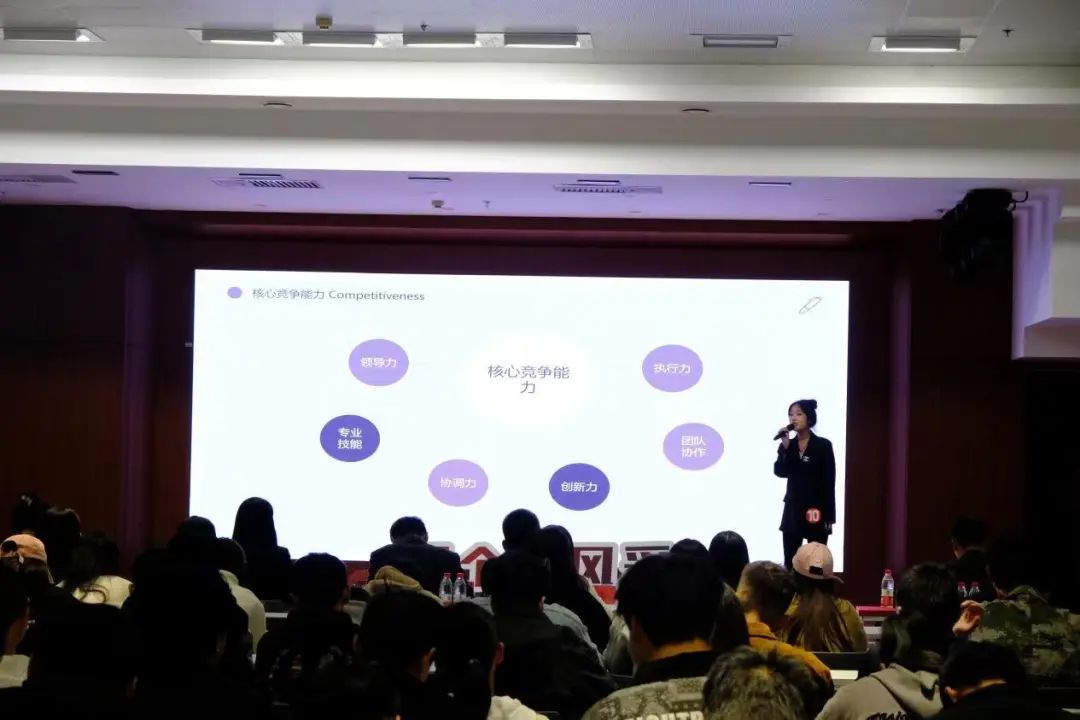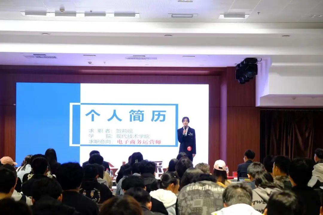 经过初赛激烈角逐,共有10名选手进入学院决赛。参赛选手依次上台通过PPT、视频展示与演讲,从自我定位、专业背景、实践经验、岗位认知、就业形势、个人优势、目标任务等方面做了详细的讲述。选手们成熟稳重,陈述逻辑清晰,充分展现自身的思维、沟通、实践等能力,结合岗位认知,展示胜任岗位的综合能力。陈述内容生动且条理清晰,不仅讲出了自己的生涯规划特色,同时也展现出了各自独有的台风,赢得在场观众的掌声与肯定。