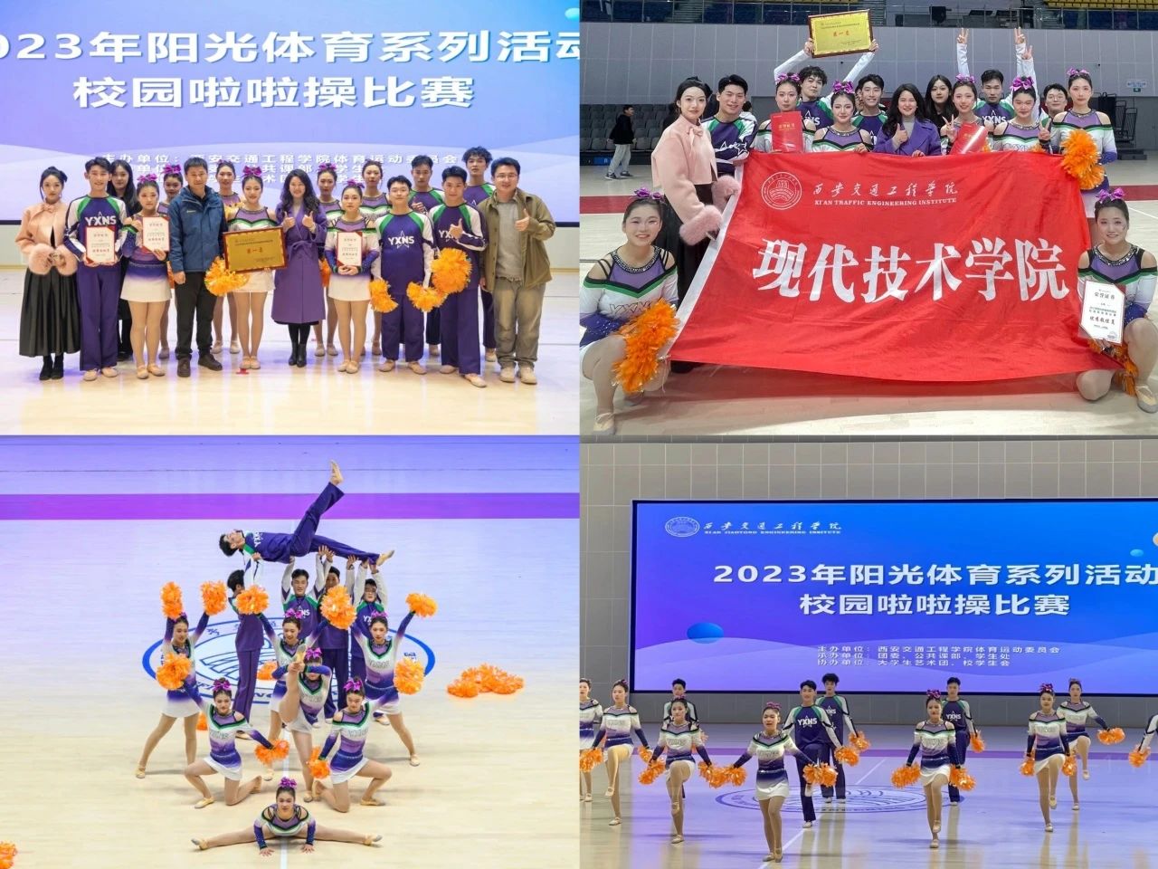 11月29日,我校首届啦啦操比赛在文体馆举行举行,本次比赛共有来自全校10支队伍参赛,参赛队伍可选择规定动作或自选动作,比赛内容分为花球、爵士、街舞、技巧四种形式。比赛场上,我院选手活力四射,热情洋溢,新颖别致的造型展现了力与美的结合,严整而灵动的队列诠释了青春的激扬与奔放,展现出斗志昂扬的精神面貌和积极向上的青春活力,赢得了观众与评委的好评。最终以优异成绩荣获第一名,成功的背后浸透汗水,她们日复一日,刻苦训练,用青春书写了华丽的篇章,用实力展现了现代学子的风采!通过每一次比赛全面提升学生的体育学科核心素养,为学校人才培养做出积极贡献。