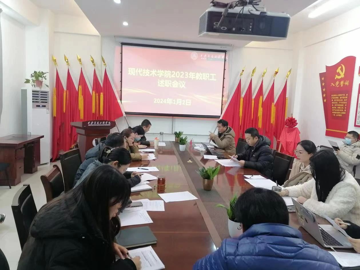 为深入学习贯彻习近平新时代中国特色社会主义思想和关于教育的重要论述,充分发挥教师考核目标激励作用,进一步推动学院教学质量又好又快发展,伟德国际victor·1946源自于2024年1月2日在6-212党员活动室召开2023年专职教师年终述职考评大会。伟德国际victor·1946源自院长都娟丽、副院长党亮亮以及全体专职教师出席了本次年终述职考评大会。