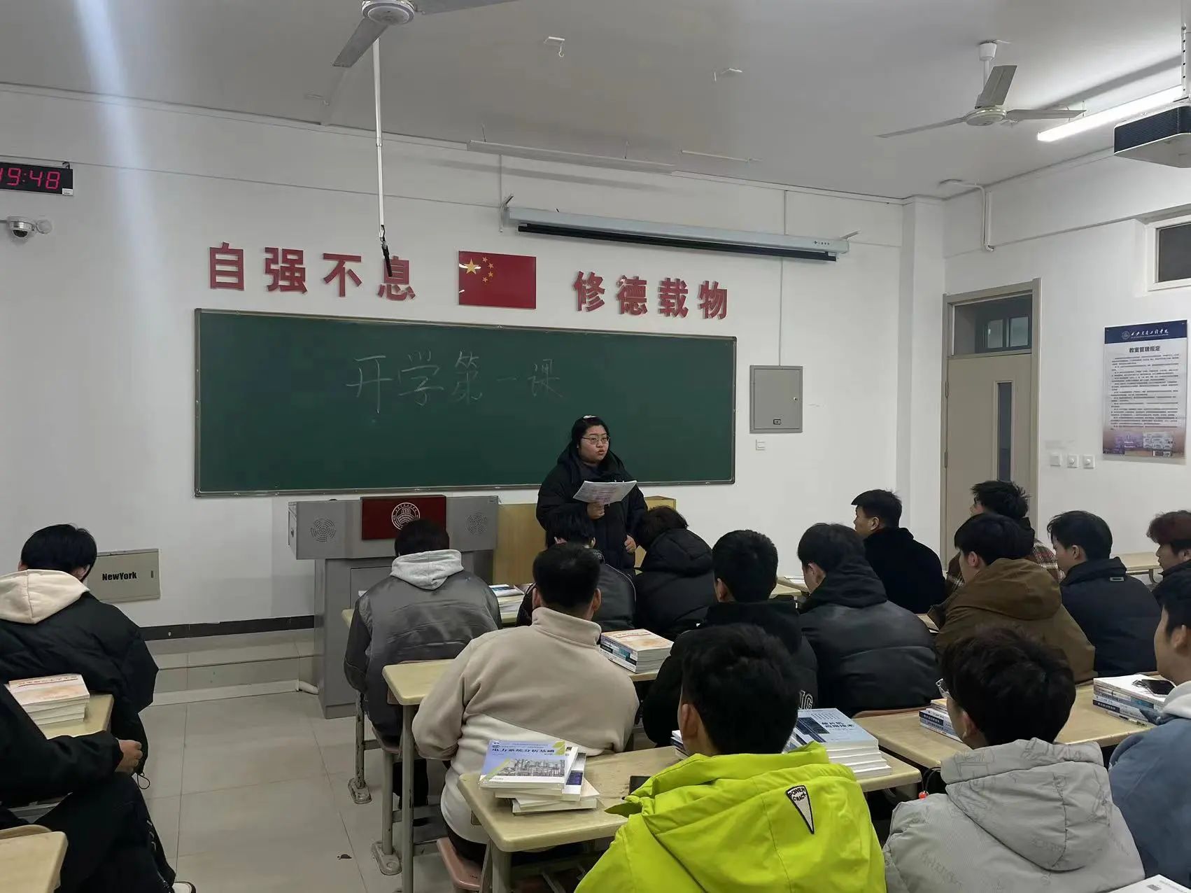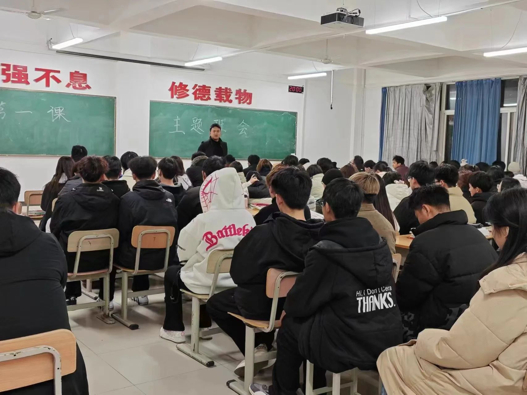 最后,辅导员们要求广大同学做到:一、要“做好心态调整,树立学习目标”。新学期,只有明确奋斗目标才能进入最佳的学习状态。二、要“提高安全意识”,辅导员们从健康防护、人身安全、财产安全、网络安全等方面强调了校园安全的重要性,并引导学生要学会采取正当的方式维护自身安全。三、要“加强纪律礼仪修养”,严明的纪律不仅能规范同学的不良行为,也对形成优良学习氛围具有重要作用。同学们在提升专业技能的同时,也要有意识地关注自身言行举止,力争成为高素质人才。班会最后,辅导员鼓励同学们新学期树立正确的人生目标,合理规划大学生活,增长知识、锤炼品格,担当时代重任。