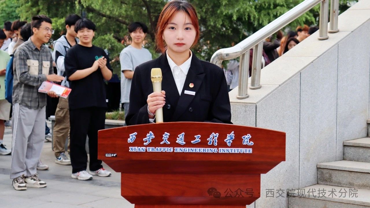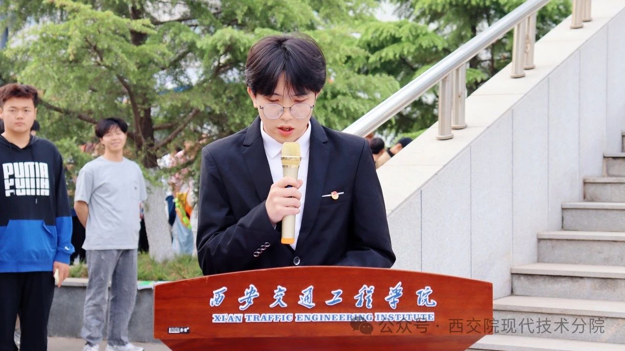 随后,运管2303班张卓一同学作为学生代表在国旗下发表演讲,他讲到,爱国主义是实现中华民族伟大复兴的强大精神动力,作为现代学子,要将爱国情怀深深植根于心中,始终保持对祖国的热爱和忠诚,关心国家发展,奋发向前,努力学习专业知识和技能,提升自己的综合素质,为建设社会主义现代化强国、实现中华民族伟大复兴的中国梦而努力奋斗!作为新一代的青年,我们会坚定理想信念,练就过硬本领,夯实专业素质,让青春之花在祖国和人民最需要的地方绚丽绽放。