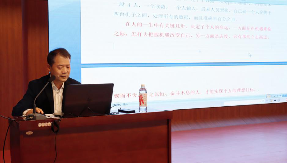讲座中,何金文结合自身成长经历和职业历程,从敢于面对,勇于向前的坚定信念;热爱集体,服务团队的大局意识;立足本职,踏实工作的奉献精神;爱岗敬业、勤勤恳恳的生活本色;劳动最美丽,奋斗最光荣的劳模情怀五方面阐述了自己对劳模精神的理解。他用质朴的语言、生动的表达,讲述了自己成为全国劳模的成长历程,生动诠释了执着专注、敬业奉献、追求卓越的精神。勉励同学们要有精益求精的初心,朝着目标不断前进、化解问题、解决困难;要有其技比良的匠心,扎实学好专业知识,强化技能培养,注重实践锻炼;要有甘于奉献的恒心,在平凡的岗位上,服务基层,服务群众,在有限生命里实现人生的价值和意义。他希望同学们在今后学习生活中,能够坚定理想信念、树立远大抱负,求真学问,练真本领,通过不断完善自我、超越自我,努力将自己塑造成一名理论扎实、技术过硬、勇于创新、品格高尚的高素质技能型人才。