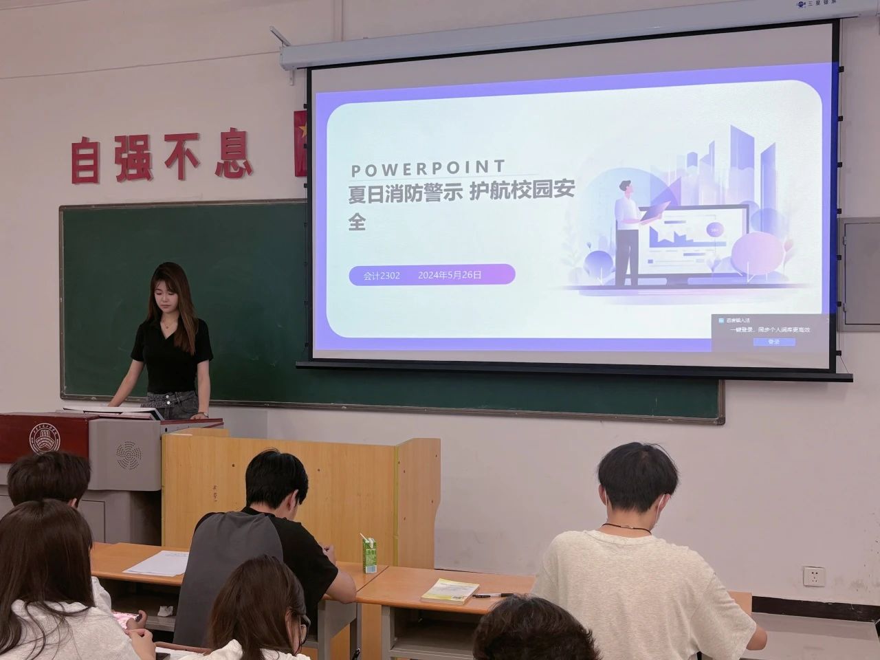 班会上,辅导员们结合近期结合今年以来发生的火灾事故案例,配合图片、数据、文字,深入浅出的向同学们普及消防安全知识,明确校园消防安全的重要性,特别是:不使用大功率电器,不在电源插座上使用过载插头,以免引发超负荷用电危险,禁止吸烟和使用明火,离开宿舍和教室时切断所有电源开关,将火灾危险事故消除在萌芽中。