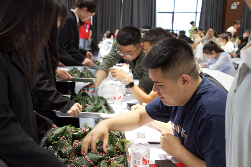 清芬蕴瑞阳,粽叶透淡幽。值端午佳节将至之际,本次决赛特别设立劳动技能展示——包粽子。活动现场,我院沉浸在欢乐的氛围中,他们灵巧的双手在翠绿的粽叶间穿梭,把对劳动的热爱全都包进了香甜的粽子里。