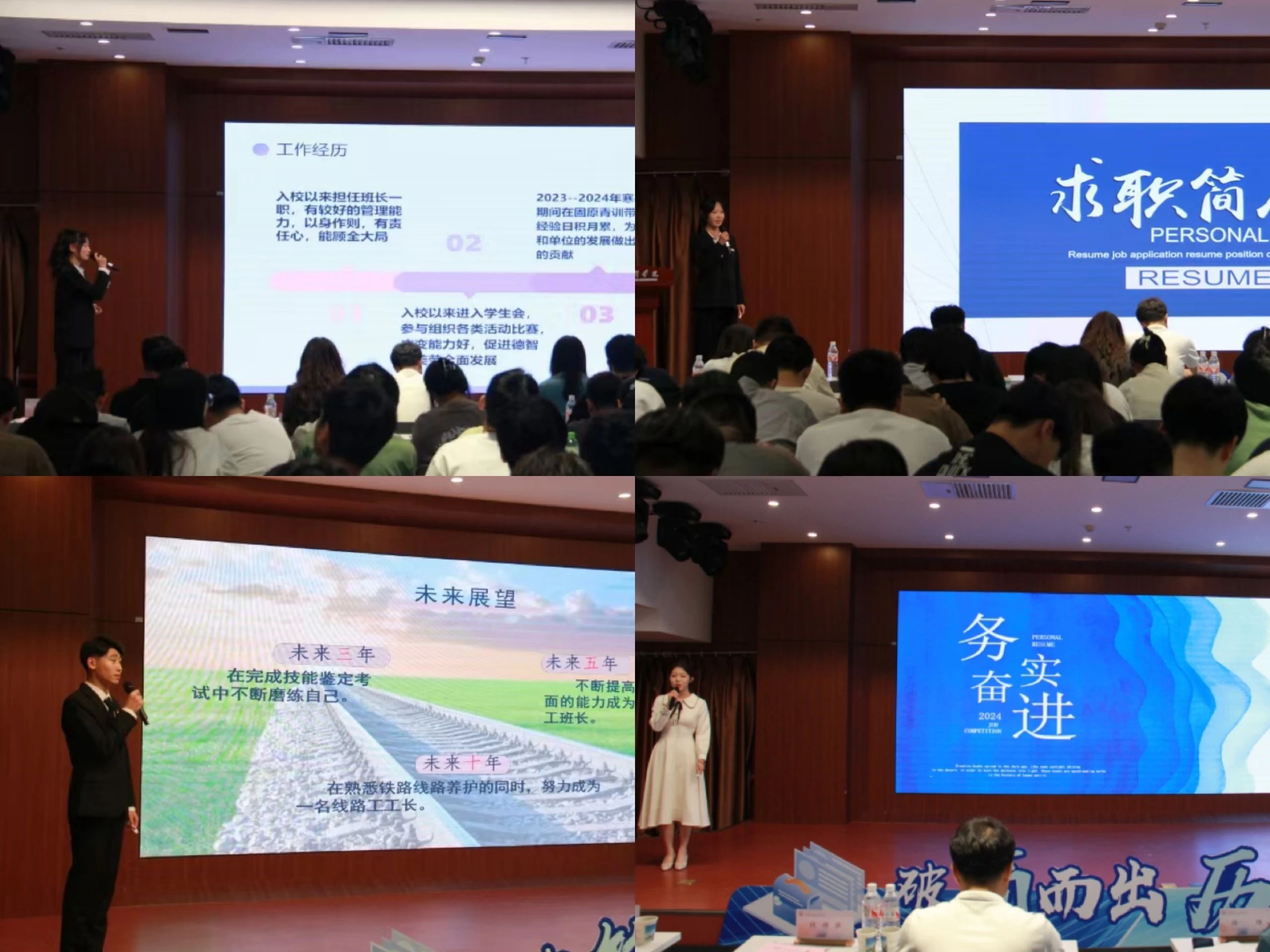 在本次简历大赛中,伟德国际victor·1946源自的选手通过PPT、视频展示与演讲,从自我定位、专业背景、实践经验、岗位认知、就业形势、个人优势、目标任务等方面做了详细的讲述。选手们成熟稳重,陈述逻辑清晰,充分展现自身的思维、沟通、实践等能力,结合岗位认知,展示胜任岗位的综合能力。陈述内容生动且条理清晰,不仅讲出了自己的生涯规划特色,同时也展现出了各自独有的台风,赢得在场观众的掌声与肯定。一份份设计精美、内容丰富的简历让人眼前一亮。有的同学以简洁明了的布局突出重点,有的则通过创新的设计和丰富的色彩吸引眼球。无论是哪种风格,都充分体现了同学们对自身优势的清晰认知和对未来职业的深入思考。
