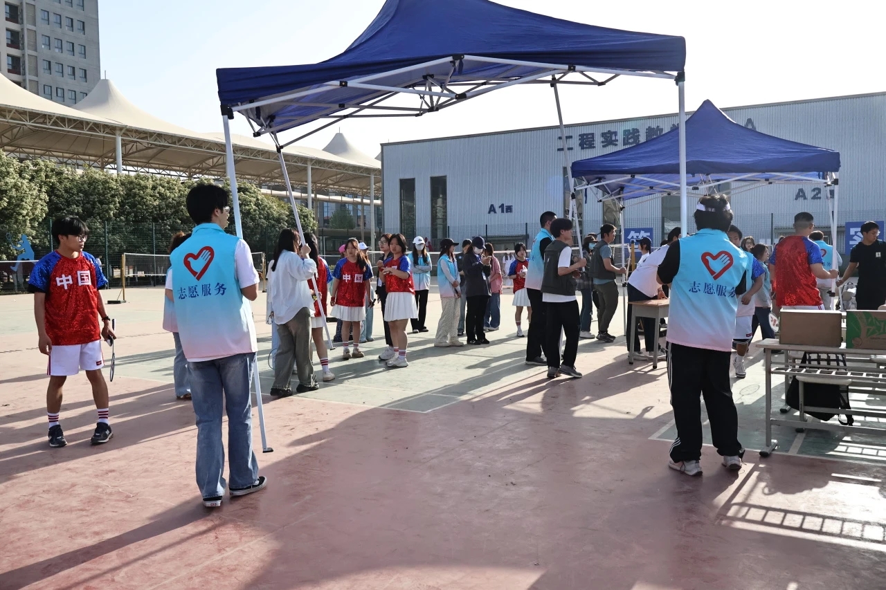 坚实有力的保障力量赛场上,运动员们你追我赶、尽情挥洒激情,在竞技舞台上绽放光芒。而在这精彩赛事的背后,服务台的工作人员们同样在自己的“战场”上默默耕耘。他们驻守在学院搭建的帐篷下,虽未踏上赛道,却时刻保持着高度的专注与热情。无论是为运动员递上急需的物资,还是提供细致周到的服务,他们用实际行动诠释着信工精神,成为运动会中一道别样动人的风景线。