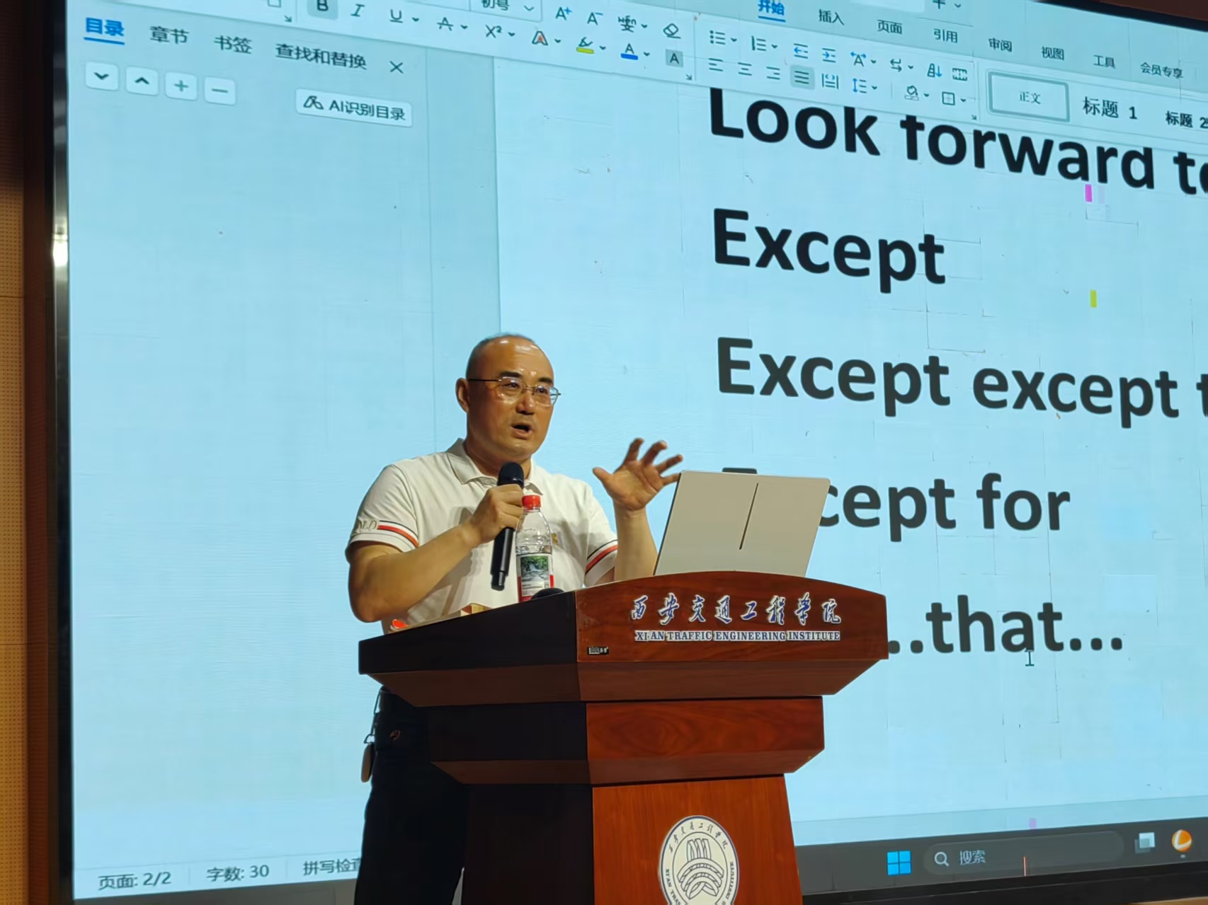 陆永岗老师以历年《大学英语》真题为切入点,针对单选、阅读理解、英译汉、作文四大题型展开深度解析。他提出“词汇量+阅读量”双提升策略,强调通过每日精读外刊、整理高频错题提升阅读理解能力;针对英译汉题型,建议采用“核心词汇提炼法”,通过诵读经典译文培养语感;作文备考则需建立“素材库+结构模板”体系,每日进行片段写作训练,确保观点鲜明、表达流畅。最后陆老师深情寄语同学们:“将来的你一定会感谢今天拼命的自己”以此激励大家。