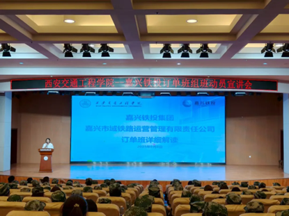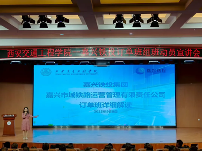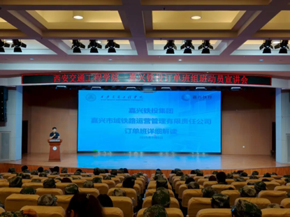 王丹主任从多个维度为学生全面解读课嘉兴订单班的核心信息:不仅带学生认识了嘉兴这个城市的发展潜力、清晰介绍了合作企业及相关线路情况,说明了报名流程、报名条件、订单班再就业成长翻盖你的优势,与未来发展前景,嘉兴铁投集团是嘉兴轨道交通领域重要国企,其全资子公司市域铁路管理有限责任公司承担市域铁路运营管理,订单班是学校深化产教融合、促进学生高质量就业的重要举措,希望同学们把握机遇,积极投身专业学习与职业规划。