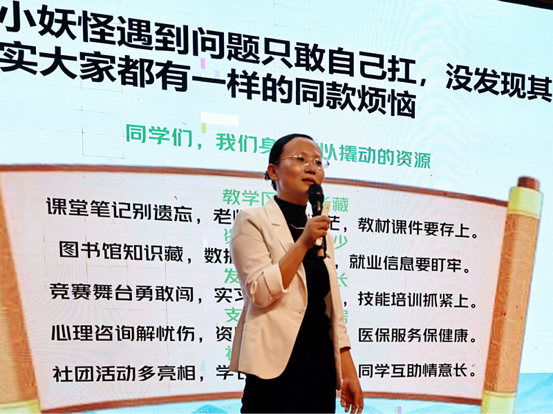 讲座伊始,肖鹤老师以电影《浪浪山的小妖怪》为线索,结合自身十余年高校招就业经验及多项专业认证背景,从认识大学、目标管理、时间管理、常见问题解答及浪浪山启示五个维度,展开大学规划指导。她先厘清学历学位体系,再对比大学与高中的差异,指出大学是“可自选的成长场”,拥有更多自主选择空间与试错机会;接着分享大学规划方法,强调从兴趣、擅长领域、期望收获三方面梳理并细化目标,鼓励学生勇于尝试新事物、整合教学区与资源区等四类资源;最后通过学长学姐的生动案例,诠释规划与实践的重要性。现场互动环节,新生们踊跃提问,肖鹤老师逐一耐心解答,现场氛围热烈且富有思辨性。她期望通过专业且富有启发性的分享,为新生绘制大学成长蓝图,引导他们从“浪浪山小妖怪”的懵懂状态中突围,成长为大学舞台乃至未来职场的主角。