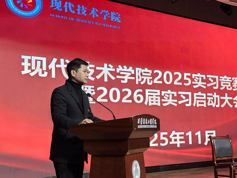 会议伊始,副校长赵征高度肯定了学院2025年度在实习工作与学科竞赛中取得的优异成绩,他指出学院坚持“专业建在产业链上,课堂设在生产线上”的办学模式,是深化产教融合的生动实践,具有重要的示范与推广价值。赵校长表示,学校将持续加大支持力度,实施实习质量提升工程,为学院实践育人工作提供坚实保障。